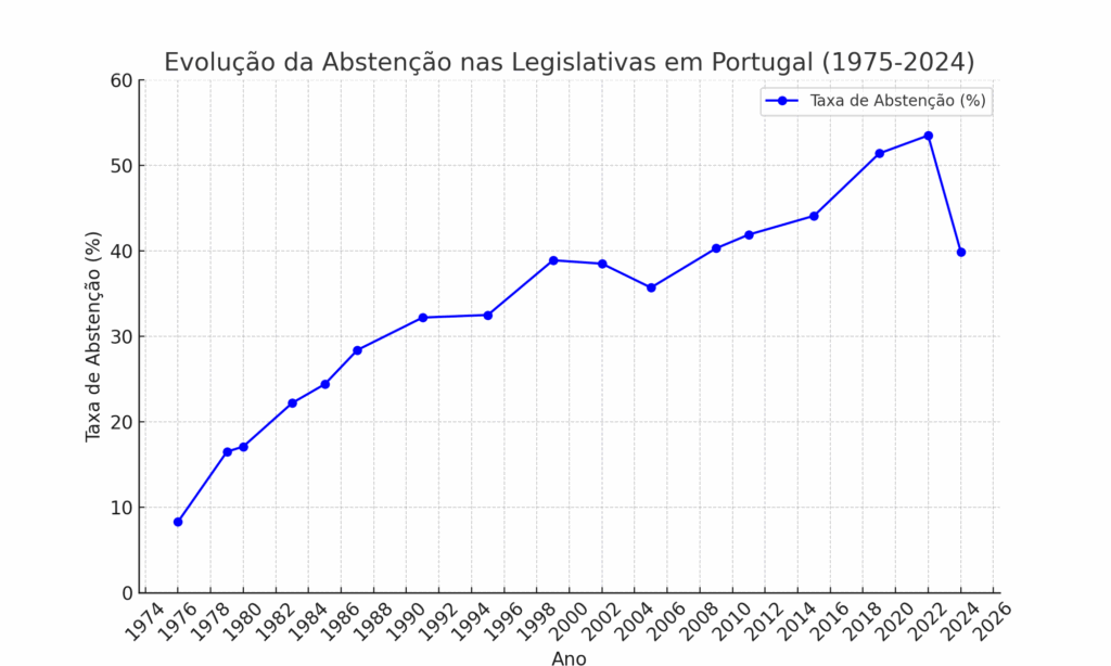Portugal enfrenta um paradoxo inquietante, na atualidade: o direito ao voto, conquista histórica de Abril, é cada vez mais negligenciado pelos próprios portugueses. Esses que, em tempos longínquos, aderiram em massa às primeiras eleições verdadeiramente democráticas, realizadas em 1975, onde apenas se registou uma taxa de abstenção de 9%. É caso para se dizer: “mudam-se os tempos, mudam-se as vontades”. Com uma taxa de abstenção de 49% nas legislativas de 2022, acima da média da União Europeia (47,8%), a abstenção eleitoral em Portugal passou a transcender a esfera do desinteresse individual para se revelar como um sintoma de uma crise estrutural. O voto, para muitos, transformou-se num ato desprovido de significação. Segundo os dados do Instituto +Liberdade, este fenómeno torna-se mais alarmante quando colocamos na balança as taxas de abstenção das eleições presidenciais de 2021 e das eleições europeias de 2019: ambas ultrapassaram os 60%.